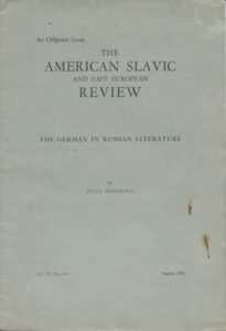 "The American Slave and east European review. The German in Russian literature" 1945.