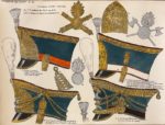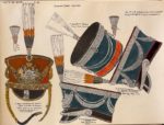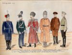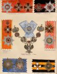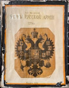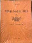 Формы русской армии 1914 г. Описание, рисунки, схемы. (Текст + Атлас). Париж, 1959. Текст: 132 стр., издательская обложка. Атлас: 120 л. ил. (А 1-22; В 1-98), полный, иллюстрации раскрашены вручную. 33,5 х 25,5 см. Издание выходило без тит. листа. Текст набран на пишущей машинке и размножен на ротаторе. Книга вышла малым тиражом (обычный тираж для подобных изданий составлял около 100 экземпляров), наш экземпляр подарен автором некоему Аркадию Сергеевичу. Хорошая сохранность.