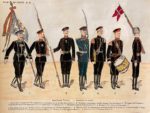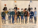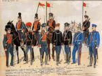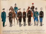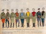 Малотиражное издание русского военного историка из Франции Владимира Владимировича Звегинцова (1914-1996). В издании описаны и изображены парадная и полевая форма гвардии, армейской кавалерии, конной артиллерии, стрелковых войск, казаков и др. Кроме мундиров, головных уборов, погон, описаны жетоны, нагрудные знаки, знамена, вензеля членов императорской фамилии и др.
