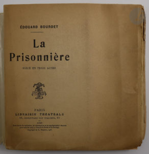 BOURDET (Édouard)..La Prisonnière. Pièce en trois actes..Paris : Librairie théâtrales, 1926. — In-8, broché..Édition originale dédiée à André Antoine, de cette pièce représentée pour la première fois le 6 mars 1926 sur la scène du...