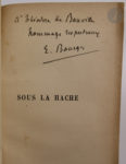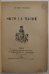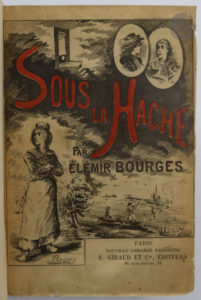 BOURGES (Élémir). .Sous la hache.Paris : Giraud et Cie, 1885. — In-18, demi-basane bordeaux, dos à nerfs, tête mouchetée, couverture conservée (reliure du XXe siècle)..Édition originale dédiée à Paul Bourget, illustrée sur la couverture...