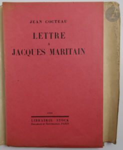COCTEAU (Jean). .Lettre à Jacques Maritain..[Avec] : MARITAIN (Jacques). Réponse à Jean Cocteau..Paris : Librairie Stock, 1926. — 2 ouvrages in-18, brochés..Éditions originales...La lettre de Jean Cocteau au philosophe Jacques Maritain est...