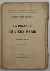 COLERIDGE (Samuel Taylor)..La Chanson du vieux marin. Traduction nouvelle de Valery Larbaud..Paris : Victor Beaumont, 1911. — In-8, broché..Édition originale de la traduction de Valery Larbaud...Exemplaire enrichi d'un envoi autographe de...