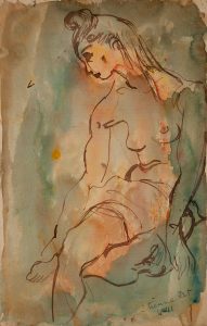 RET (Etienne). Nu féminin, vers 1930. Aquarelle recto verso. 48,5 × 31,5 cm.