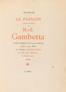 .1882-. LIBRO: .(ARTE-BIBLIOFILIA)-. .NADAR:--.LA PASSION.--Paris: Imp. Motteroz, 1882 [en texto]. 8º. 46 p. Profus. ilustr. en texto por N. S. Gambetta. Rústica editorial a dos tintas, manchada. Edición limitada a 475 ejemplares, del tiraje de...
