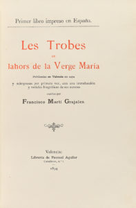 .1894-. LIBRO: .(BIBLIOFILIA)-. .[MARTÍ GRAJALES, FRANCISCO. EDIT.]:--.LES TROBES EN LAHORS DE LA VERGE MARÍA. PUBLICADAS EN VALENCIA EN 1474 Y REIMPRESAS POR PRIMERA VEZ, CON UNA INTRODUCCIÓN Y NOTICIAS BIOGRÁFICAS DE SUS AUTORES ESCRITAS POR...