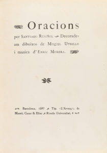 .1897-. LIBRO: .(BIBLIOFIlIA- LITERATURA)-. .RUSIÑOL, SANTIAGO:--.ORACIONS. Decorades amb dibuixos de Miquel Utrillo i musica d´Enric Morera.--Barcelona: Tip. l´Avenç, 1897. 8º mayor. 316 p. + 2 h. Ilustr. con 32 dibujos a color de Miquel...
