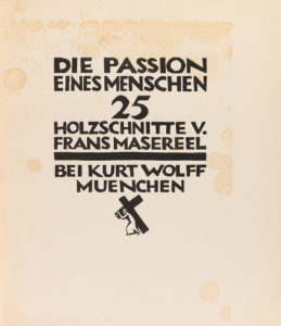.1924-. LIBRO: .(ARTE-BIBLIOFILIA)-. .MASEREEL, FRANS:--.DIE PASSION EINES MENSCHEN.--Muenchen [Munic]: Kurt Wolff, 1924. 8º mayor cuadrado. 2 h. + 25 xilografías en negro + 2 h. Óxido en la portada y guarda. Enc. en cartoné editorial impreso....