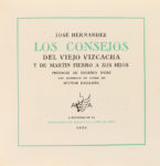.1928-. LIBRO: .(BIBLIOFILIA)-. .HERNANDEZ, JOSÉ:--.LOS CONSEJOS DEL VIEJO VIZCACHA Y DE MARTIN FIERRO A SUS HIJOS.--Prefacio de Eugenio d´Ors. Paris: Tip. Leon Pichon, 1928. 8º menor, cuadrado. 46 p. + 2 h. Ilustr. con grabados al cobre,...