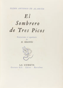 .1934-. LIBRO: .(BIBLIOFILIA)-. .ALARCON, PEDRO ANTONIO DE:--.EL SOMBRERO DE TRES PICOS.--Ilustr. al aguafuerte de X. Nogues. Barcelona: La Cometa, Gustavo Gili, 1934. 4º. 232 p., 2 h. Ilustr. en texto y a toda página. Algún punto de óxido. Enc....
