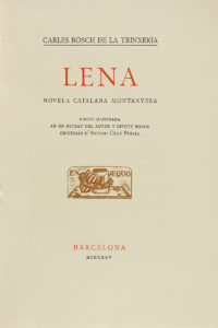 .1935-. LIBRO: .(BIBLIOFILIA)-. .BOSCH DE LA TRINXERIA, CARLES:--.LENA-. Novela catalan montanyesa. Barcelona: Imp. Miquel y Rius, 1935. Retrato y portada, IX-368 p., 4 h. Ilustrada con 18 viñetas grabadas al boj d´Antoni Ollé Pinell. Enc. en tela...