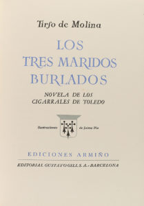 .1951-. LIBRO: .(BIBLIOFILIA)-. .TIRSO DE MOLINA; PLA. JAIME [ilustrador]:--.LOS TRES MARIDOS BURLADOS.--Ediciones Armiño. Barcelona: Editorial Gustavo Gili, S.A., 1951. 2 vol. 8º mayor. 127 p. Impreso a dos tintas y con ilustraciones de Jaime PLA....