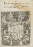 España... ]-. PRUEBA DE IMPRENTA, ÚNICA conocida, de la obra publicada en Pamplona por Fco. Antonio de Neyra en 1714. 8º mayor. El ejemplar se presenta como sigue: en la primera hoja blanca lleva manuscrito el siguiente texto ´Contiene este libro los Escudos de Armas delos Palacios y Casas, infanzonados del valle dela Valdroba en el Reyno de Navarra- saldran en libro, que se dara alaEstampa conesplicacion de los Blasones, por (...) elaño sig. del 1714, queriendo Dios´ + 15 h. b. + 105 escudos grabados. Muchos de estos escudos con la leyenda manuscrita, de la misma mano que el texto de la primera hoja blanca. Enc. pergamino de época. Es prueba de impresión de los escudos, no lleva ni la portada ni el texto.