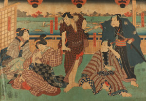 .1900 ca.--GRABADO: .TRES LITOGRAFÍAS JAPONESAS.--Tres litografías japonesas, coloreadas, sobre papel de arroz (una de ellas remontada). Un es retrato de un personaje femenino, el segundo es un accidente en el campo, con el relato escrito en el...