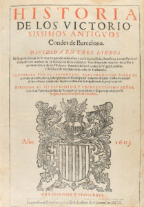 .1603.--LIBRO: .(HISTORIA BARCELONA).--.DIAGO, F. FRANCISCO:--.HISTORIA DE LOS VICTORIOSISSIMOS ANTIGUOS CONDES DE BARCELONA.--Barcelona: Sebastián de Cormellas, 1603. Folio. 8 h. + 318 fol. + 10 h. Portada a dos tintas con el escudo de los condes...