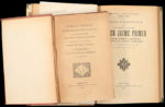 seguida en los dos vol.) Grabados y dibujos en negro dentro de texto. Láminas fotográficas en sepia. Una lámina plegada y un plano de las ruinas de Ampurias a doble página. Puntos de óxido. Dos vol. enc. en media piel, rozada.