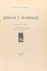 .1929-. LIBRO: .(HISTORIA)-. .ROCA, JOSE Mª:--.JOHAN I D´ARAGO. Treball premiat en el sisè concurs Rafael Patxot y Ferrer corresponent a l´any 1926.--Barcelona: Institució Patxot, 1929. 4º mayor. 467 p.+ 1 h. Enc. en media piel, nervios, corte...