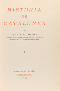 .1934-. LIBRO: .(HISTORIA)-. .SOLDEVILA, FERRAN:--.HISTÒRIA DE CATALUNYA.--Barcelona: Ed. Alpha, 1934. 3 vol. en 4º menor. I: XV + 473 p. II: 2 h. + 432 p. III: 2 h. + 268 p. y una lám. plegada. Tres vol. enc. por BRUGALLA en media piel, puntas,...