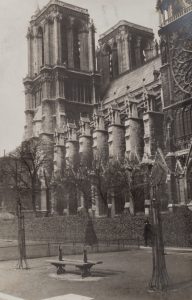 KRULL (Germaine) (1897-1985). Notre-Dame de Paris. Vers 1930. Épreuve gélatino-argentique d'époque. Cachet à l'encre bleue au dos " Germaine Krull Mention Obligatoire ". 22 × 14,5 cm. Amincissement de l'épreuve au dos, aux quatre angles