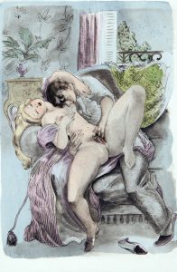 [Curiosa]. [BALLIVET (Suzanne), ill.]. Initiation amoureuse. Avec des illustrations originales par une artiste célèbre. A Buenos-Ayres, Pour les amis de l'artiste, 1943 [i.e.Paris, Georges Guillot, vers 1950], in-4 en feuilles sous couv. rempliée...