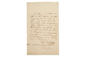Mde Laplace qui m'apprend qu'elle est arrivée à Milan et qu'elle y attend mes commissions pour l'impératrice. Méjan fera de ma part bien des complimens et répondra que j'ai écrit aujourd'hui par courier à l'Empereur et l'Impératrice»...L.A.S. "Le pce EB", Friday [13 September 1805, to his secretary of commands, Étienne MÉJAN]; 1 page in-8. "I have just received a letter from Mde Laplace who informs me that she has arrived in Milan and that she is waiting there for my commissions for the Empress. Méjan will make many compliments on my behalf and will answer that I have written today by mail to the Emperor and the Empress"...