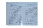 FLAUBERT Gustave (1821-1880)L.A.S. «Gve Flaubert» adressée à Ernest FEYDEAU. [Croisset] Dimanche 5 août [1860]; 2 pages in-8 sur papier bleu (petite déchirure au pli central du bi feuillet affectant trois lettres Honteusem «ent»). Belle...