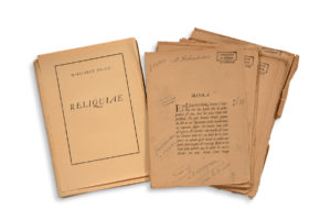 FINALY Marguerite († 1921)Épreuves, [Reliquiae, 1925]; plus de 300 feuillets formats divers, sous chemise demi-maroquin marron et étui. 6 jeux d'épreuves pour Reliquiae (Léon Pichon, 1925), livre posthume de Marguerite Finaly (née Pompée)...