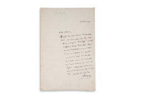 tiennent à les perfectionner jusqu'à la fin. Je lirai vos additions et en profiterai. Vous êtes de ceux de qui nous attendons bien des choses encore; vous m'avez fait venir l'eau à la bouche avec Mme de Caylus. Soyez prodigue, cher monsieur, nous ne dirons jamais: c'est trop! ni: c'est assez»...L.A.S., April 16; 1 page in-8. He was slow to thank "for this magnificent volume which smells in full of his Louis XIV and his Versailles neighbourhood! you are one of those fathers who look after their children and who want to perfect them to the end. I will read your additions and enjoy them. You are one of those from whom we are still waiting for many things; you have made my mouth water with Mme de Caylus. Be prodigal, dear sir, we will never say: it is too much! nor: it is enough"...