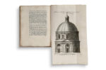 Édition originale de ce traité d'architecture illustrée en frontispice du portrait gravé de l'auteur de Giacomo Mercori d'après Martin Knoller, et en fin de volume, de 5 planches gravées dépliantes, trois d'entre elles illustrant l'église paroissiale de Seregno, aujourd'hui église San Giuseppe à Milan. Très bel exemplaire.[ARCHITECTURE]. PINI Ermenegildo (1739-1825) Dell'Architectura. Dialogi di Ermenigildo Pini C.R.B Milano, Marelliana, 1770. In-4 (285 x 215 mm), in Italian, frontispiece -title-[4]-88 pp.-5 folding plates. Marbled half-cartonnage. First edition of this architectural treatise illustrated on the frontispiece with an engraved portrait of the author by Giacomo Mercori after Martin Knoller, and at the end of the volume, with 5 engraved folding plates, three of them illustrating the parish church of Seregno, today the church of San Giuseppe in Milan. A very fine copy.