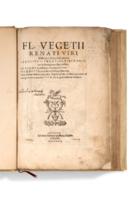 [MILITARIA]. [VÉGÈCE, Publius Flavius Vegetius Renatus (IVe-Ve siècles)] De re Militari libri quatuor. Sexti Julii Frontini Viri Consularis de Strategematis libri totidem. Aeliani de instruendis aciebus liber unus. Modesti de vocabulis rei...