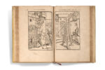 militaris liber unus. Item picturae bellicae CXX passim Vegetio adiectae. Collata sunt omnia ad antiquos codices, maximè Budaei, quod testabitur Aelianus Paris, Sub scuto Basiliensi ex officina Christiani Wecheli, 1535. In-4 (335 x 235 mm), 279 pp. Marque de l'imprimeur aux premier et dernier feuillets, 1 portrait gravé de lansquenet à pleine page, répété aux feuillets [a4v] et Q1v (gravé à trois reprises), 1 diagramme in-texte et 119 planches hors-texte à pleine page. Plein vélin à petits rabats, dos lisse titré et daté à l'encre brune, signet conservé (reliure moderne). Seconde édition donnée par Wechel de cet ouvrage richement illustré de 122 planches gravées hors-texte. Ce traité d'art militaire de Végèce est resté célèbre pour sa riche illustration, où l'on peut observer divers canons mobiles, des échelles télescopiques, des scaphandres, des bottes étanches permettant de traverser des étendues d'eau ou encore diverses frondes et projectiles explosifs. Le portrait du lansquenet, ainsi que les costumes des personnages qui peuplent les bois suggèrent que ces derniers sont issus d'un atelier allemand: ils sont d'ailleurs repris d'une édition d'Augsbourg, datant de 1529. Mortimer, Early French Books, cat. 563. PROVENANCE «Bibliothèque S. Barnabé Mediolani»; «Ferrini Placentie» (mentions à l'encre sur f. de titre, annotations dans le texte). (Restauration au coin inférieur du f. de titre, piqures, quelques pages brunies, piqures et taches éparses, mouillure en bas de page sur les 36 premières pages).[MILITARIA]. [VEGECE, Publius Flavius Vegetius Renatus (4th-5th centuries)] De re Militari libri quatuor. Sexti Julii Frontini Viri Consularis de Strategematis libri totidem. Aeliani de instruendis aciebus liber unus. Modesti de vocabulis rei militaris liber unus. Item picturae bellicae CXX passim Vegetio adiectae. Collata sunt omnia ad antiquos codices, maximè Budaei, quod testabitur Aelianus Paris, Sub scuto Basiliensi ex officina Christiani Wecheli, 1535. In-4 (335 x 235 mm), 279 pp. Printer's mark on first and last leaves, 1 full-page engraved portrait of lansquenet, repeated on leaves [a4v] and Q1v (engraved three times), 1 in-text diagram and 119 full-page plates. Full vellum with small flaps, smooth spine titled and dated in brown ink, bookmark preserved (modern binding). Second edition given by Wechel of this work richly illustrated with 122 plates engraved hors-texte. This treatise of military art by Vegetius has remained famous for its rich illustration, where one can observe various mobile cannons, telescopic ladders, diving suits, waterproof boots allowing to cross bodies of water or various slings and explosive projectiles. The portrait of the lansquenet, as well as the costumes of the characters who populate the woods suggest that the latter are from a German workshop: they are moreover taken from an Augsburg edition, dating from 1529. Mortimer, Early French Books, cat. 563. PROVENANCE "Bibliothèque S. Barnabé Mediolani"; "Ferrini Placentie" (notes in ink on title f., annotations in text). (Restoration to the lower corner of the title f., spotting, some pages browned, scattered spotting and staining, footer wetness on the first 36 pages).