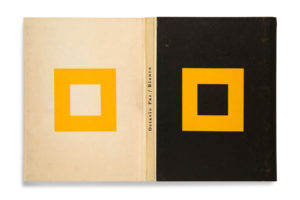 L'un des 550 exemplaires limités numérotés (celui-ci n° 443). Le feuillet original de l' «Aviso al Lector» est inclus. (État d'usage du cartonnage et de l'étui).Blanco México, Joaquin Mortiz, 1967. In-8 square (230 x 175 mm), in Spanish. Publisher's hardback with illustrated boards and titled spine, slipcase of the same. Rare first edition of this accordion-mounted collection of poems. One of 550 numbered limited copies (this one no. 443). The original leaf of the "Aviso al Lector" is included. (Used condition of the boards and case).