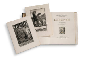 DROUART Raphaël (1884-1972) - HEREDIA José-Maria de (1842-1905)Les Trophées Paris, Société du livre d'art, 1928. Broché, 244 pp., couverture imprimée et illustrée, chemise rigide avec pièce de titre au dos et étui d'édition. Édition...
