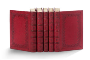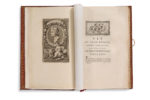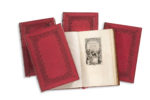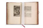 daté, plats ornés d'une large bordure de fers à triple encadrement central estampé à froid, tête dorée, gardes de moire taupe ornées de fers aux centre et écoinçons, roulette intérieure, contregardes de papier marbré, signets de soie rouge conservés (reliure postérieure signée De Watines). Belle édition contenant 5 titres-frontispices, 1 portrait, 110 figures hors texte et 97 culs-de-lampe de Gravelot, Boucher, Cochin et Eisen, gravés par Aliamet, Baquoy, Lemire, Lempereur, Saint-Aubin, Sornique et Tardieu. «Un des livres illustrés les plus réussis de tout le XVIIIe siècle. Avec ses scènes galantes dans des décors de salon XVIIIe et ses ravissants culs-de-lampe toujours renouvelés, ce Boccace est l'un des livres les plus représentatifs du goût bibliophilique sous Louis XV» selon Cohen. Très bel exemplaire dans une reliure contemporaine de qualité en maroquin rouge. PROVENANCE Collection privée; Lille, vente Me Girard, 18 octobre 1936 L'on joint un ensemble de 7 gravures du XIXe siècle d'Émile Boilvin d'après les peintures de De Beaumont, illustrant des scénettes des Dames galantes de Brantôme (chaque gravure, 190 x 140 mm). (Bon état général malgré quelques rousseurs sur tranches; quelques rousseurs sans altération).[GRAVELOT]. [BOUCHER]. [EISEN]. [COCHIN] - BOCCACE (1313-1375) The Decameron London, no ed., 1757-1761. 5 volumes in-8, 200 to 320 pp. per volume, in French (frontispieces in Italian). Full burgundy morocco, spine ribbed and decorated, titled and dated, boards decorated with a wide border of irons with a central triple frame stamped in cold, gilt head, taupe moire endpapers decorated with irons in the centre and spandrels, inner scroll, marbled paper counters, red silk bookmarks preserved (later binding signed De Watines). Beautiful edition containing 5 title-frontispices, 1 portrait, 110 out-of-text figures and 97 culs-de-lampe by Gravelot, Boucher, Cochin and Eisen, engraved by Aliamet, Baquoy, Lemire, Lempereur, Saint-Aubin, Sornique and Tardieu. "One of the most successful illustrated books of the entire 18th century. With its gallant scenes in eighteenth century salon settings and its delightful and constantly renewed culs-de-lampe, this Boccaccio is one of the most representative books of the bibliophilic taste under Louis XV" according to Cohen. A very fine copy in a contemporary quality binding in red morocco. PROVENANCE Private collection; Lille, sale by Me Girard, 18 October 1936 Attached is a set of 7 19th century engravings by Emile Boilvin after paintings by De Beaumont, illustrating scenes from Brantôme's Dames galantes (each engraving, 190 x 140 mm). (Good general condition despite some foxing on edges; some foxing without alteration).