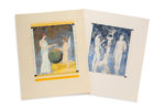 compositions de Sébastien Laurent. Les compositions sont ici rehaussées à l'aquarelle et à l'or (ce qui n'est pas le cas pour d'autres exemplaires). Tirage limité à 50 exemplaires numérotés sur papier Japon (n° XIX) signé à l'encre brune par Sébastien Laurent. Notre exemplaire ne comporte pas les 3 états supplémentaires du frontispice, mais contient, en plus, une décomposition des couleurs du frontispice, une épreuve définitive de la planche de «la décollation», une suite en bleu de toutes les illustrations autres que le frontispice reproduites en fac-similé, et une décomposition des couleurs d'une autre planche ainsi que son épreuve définitive. Bon état général (emboîtage accidenté).Le Banquet Paris, Javal et Bourdeaux, 1928. In-4 (295 x 242 mm), in sheets, printed filled cover, publisher's red morocco slipcase. Woodcut frontispiece by Camille Beltrand and compositions by Sébastien Laurent. The compositions are here enhanced with watercolours and gold (which is not the case for other copies). Limited edition of 50 numbered copies on Japon paper (n° XIX) signed in brown ink by Sébastien Laurent. Our copy does not include the 3 additional states of the frontispiece, but contains, in addition, a colour breakdown of the frontispiece, a final proof of the plate of "la décollation", a suite in blue of all the illustrations other than the frontispiece reproduced in facsimile, and a colour breakdown of another plate as well as its final proof. Good general condition (damaged slipcase)