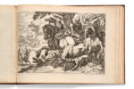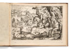 avec pièce de titre de maroquin noir titré or. Belle suite de 10 gravures sur cuivre, d'après Tempesta, numérotées 1 à 10 et mention «A Paris chez P. Mariette», non signées et non légendées. Elles représentent: 1. Chasse au sanglier; 2. Chasse au lion; 3. Autre chasse au lion; 4. Chasse à l'autruche; 5. Chasse à l'auroch; 6. Chasse au sanglier et au loup; 7. Chasse au loup; 8. Chasse au sanglier; 9. Chasse au cerf; 10. Chasse à l'ours. RÉFÉRENCE Thiébaud, 878. (Quelques rousseurs n'affectant pas les planches, restauration). PROVENANCE Bibliothèque Horace Finaly[HUNTING]. [TEMPESTA Antonio (1555-1630)] Album of prints of hunting scenes In Paris, at P. Mariette, s. d. [ca. 1680]. In-8 oblong (210 x 290 mm), 10 copper-engraved plates (165 x 250 mm without the margin). Marbled paper boards, spine with black morocco title-piece titled in gold. Beautiful suite of 10 copper engravings, after Tempesta, numbered 1 to 10 and marked "A Paris chez P. Mariette", unsigned and uncaptioned. They depict: 1. Wild boar hunt; 2. Lion hunt; 3. Other lion hunt; 4. Ostrich hunting; 5. Auroch hunting; 6. Boar and wolf hunting; 7. Wolf hunting; 8. Wild boar hunting; 9. Deer hunting; 10. Bear hunting. REFERENCE Thiébaud, 878. (Some foxing not affecting the plates, restoration). PROVENANCE Horace Finaly Library