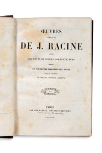Tirage à 400 exemplaires. L'un des 380 exemplaires numérotés sur vélin à la forme (celui-ci n°386); COURIER Paul-Louis, Lettres de France et d'Italie (1804-1812). Introduction par Emile Henriot. Paris, Les bibliophiles du papier, 1927 ; DRAINS Geo A. - LAFORGUE Jules, Les Complaintes. Paris, éditions du Sagittaire, Simon Kra, 1923 ; LAFNET Luc - [PICCOLOMINI Aeneas Sylvius], Euryale et Lucrèce. Histoire de deux amants. Paris, Les bibliophiles du papier, 1931. Un des 110 exemplaires (n°91 pour M. Paul Bourlon) sur vélin de Lana, illustré de 13 eaux-fortes de Luc Lafnet en noir, accompagné d'une suite en couleurs ; RACINE Jean, Oeuvres complètes de J. Racine avec les notes de divers commentateurs [...] Paris, Garnier Frères, 1853. In-4 (264 x 180 mm), 656 pp. Demi-basane blond, dos lisse estampé à froid, titré et orné. (Rousseurs, état d'usage de la reliure) ; VERNE Jules, Voyages Extraordinaires. Nord contre Sud. Illustrations de Benett et une carte.Paris, Hetzel et Cie, 1887 ; VIRGILE, P. Virgilius Maro accurante Nic. Hensio Dan. Fil. Amstelodami, Elzeviriana, 1676 ; [REVUE]. [SPORT]. Le Sport Universel Illustré 1929-1930. 2 forts volumes reliés grand in-4.Set of works, including illustrated books BRUYER Georges - MOLIÈRE, Oeuvres (Théâtre) de Molière. Drawings by G. Bruyer. Paris, G. Crès & Cie, 1924. 2 strong volumes in-4, 753 and 778 pp. Paperback, uncut, edition covers. Edition of 400 copies. One of 380 numbered copies on vellum (this one n°386); COURIER Paul-Louis, Lettres de France et d'Italie (1804-1812). Introduction by Emile Henriot. Paris, Les bibliophiles du papier, 1927; DRAINS Geo A. - LAFORGUE Jules, Les Complaintes. Paris, éditions du Sagittaire, Simon Kra, 1923; LAFNET Luc - [PICCOLOMINI Aeneas Sylvius], Euryale et Lucrèce. Histoire de deux amants. Paris, Les bibliophiles du papier, 1931. One of 110 copies (n°91 for M. Paul Bourlon) on Lana vellum, illustrated with 13 etchings by Luc Lafnet in black, accompanied by a suite in color; RACINE Jean, Oeuvres complètes de J. Racine avec les notes de divers commentateurs [...] Paris, Garnier Frères, 1853. In-4 (264 x 180 mm), 656 pp. Half blond basane, smooth spine stamped in cold, titled and decorated. (Freckles, condition of the binding) ; VERNE Jules, Voyages Extraordinaires. North against South. Illustrations by Benett and a map.Paris, Hetzel et Cie, 1887; VIRGILE, P. Virgilius Maro accurante Nic. Hensio Dan. Fil. Amstelodami, Elzeviriana, 1676; [REVIEW]. [SPORT]. Le Sport Universel Illustré 1929-1930. 2 strong volumes bound large in-4.