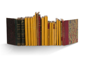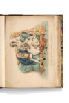 Mayeux. Paris, Lecointe, Corbet, Pigoreau, 1831 (4 tomes) (en double exemplaire, les 4 tomes réunis en 2 volumes) ; Monsieur Mayeux, ou le bossu à la mode ; Mayeux et Arlequin aux salons. Critique des tableaux en vaudevilles. Paris, 1831 suivi de Mayeux l'Indépendant, [...]. Paris, Ledoyen, s.d. ; Histoire complète et véritable de M. Mayeux. Paris, 1834 ; Histoire de la Révolution de 1830 !!! Pot-pourri véridique et satirique écrit sous la dictée d'Hercule Mayeux. Paris, 1832 ; Les farces et les bamboches populaires de Mayeux. Paris, Delarue, 1831 (en double exemplaire) ; Vie politique civile militaire et privée de M. Mayeux. Paris, Delaunay, 1831 ; L'orphelin polonais, nouveau chansonnier par MM. De Béranger, E. Debraux, Déremy [...] Paris, Au burebu, 1831 suivi de Exploits et aventures de Mahieux. Paris, 1832; Histoire véritable, facétieuse, gaillarde, politique et complète de M. Mayeux [...] Paris, Terry, s.d. ; Vies et aventures surprenantes de M. Mayeux et de sa nombreuse famille. Paris, 1846 ; Oeuvres de feu Mr. Mayeux. Paris et Nancy. Cet ensemble est enrichi d'un manuscrit relié intitulé : Mayeux. Extrait de l'Ouvrage «Paris ou Le Livre des Cent-et-Un » Tome Troisième. Paris, chez Ladvocat, 1832. D'après Anaïs de Raucou Bazin.c L'on joint : - DAUMIER-GAVARNI-JOHANNOT..., Le Grand abécédaire en action. Paris, Aubert et Cie, s.d. Percaline rouge titrée d'édition. Cet exemplaire est truffé de vignettes contrecollées ; - Le tabac vengé, physiologie du tabac, de la pipe, du cigare, de la cigarette et de la tabatière. Paris, 1845 ; - MAURIAL L., L'art de boire connaître et acheter le vin et toutes les boissons. Paris, A. Lemerre, 1881. PROVENANCE : Bibliothèque Horace Finaly ; vente Champfleury, 17 décembre 1890.[CARICATURES]. [TRAVIES DE VILLIERS Charles-Joseph (1804-1859)] Important set of works bound around the character of Mr. MAYEUX Vie de Monsieur Mayeux ; Le célèbre Mayeux (in double copy) ; Monsieur Mayeux ; RICARD Auguste, M. Mayeux. Paris, Lecointe, Corbet, Pigoreau, 1831 (4 volumes) (in double copy, the 4 volumes gathered in 2 volumes); Monsieur Mayeux, ou le bossu à la mode; Mayeux et Arlequin aux salons. Critique of the paintings in vaudevilles. Paris, 1831 followed by Mayeux l'Indépendant, [...]. Paris, Ledoyen, n.d.; Histoire complète et véritable de M. Mayeux. Paris, 1834 ; History of the Revolution of 1830 ! Pot-pourri véridique et satirique écrit sous la dictation d'Hercule Mayeux. Paris, 1832; Les farces et les bamboches populaires de Mayeux. Paris, Delarue, 1831 (in duplicate); Vie politique civile militaire et privée de M. Mayeux. Paris, Delaunay, 1831; L'orphelin polonais, nouveau chansonnier par MM. De Béranger, E. Debraux, Déremy [...] Paris, Au burebu, 1831 followed by Exploits et aventures de Mahieux. Paris, 1832; Histoire véritable, facétieuse, gaillarde, politique et complète de M. Mayeux [...] Paris, Terry, s.d.; Vies et aventures surprenantes de M. Mayeux et de sa nombreuse famille. Paris, 1846 ; Oeuvres de feu Mr. Mayeux. Paris and Nancy. This set is enriched by a bound manuscript entitled: Mayeux. Extract of the work "Paris ou Le Livre des Cent-et-Un " Tome Troisième. Paris, chez Ladvocat, 1832. After Anaïs de Raucou Bazin.c Attached : - DAUMIER-GAVARNI-JOHANNOT..., Le Grand abécédaire en action. Paris, Aubert et Cie, s.d. Red percale titled edition. This copy is full of counter-glued vignettes; - Le tabac vengé, physiologie du tabac, de la pipe, du cigare, de la cigarette et de la tabatière. Paris, 1845; - MAURIAL L., L'art de boire connaître et acheter le vin et toutes les boissons. Paris, A. Lemerre, 1881. PROVENANCE: Horace Finaly Library; Champfleury sale, 17 December 1890.