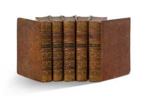 titre-frontispice-139 pp.-[2] ff.-680 pp.- f. de Privilège (III) ; titre-frontispice-123 pp.-699 pp. (IV) ; titre-frontispice-[8] ff.-928 pp. (V). Plein veau moucheté, dos fleuronnés dorés à nerfs, pièces de titre en maroquin rouge, pièces de tomaison en maroquin vert, gardes de papier marbré, tranches rouges, signets conservés (reliure d'époque). Chaque volume contient un frontispice de et gravé par Charles-Nicolas Cochin fils. Bandeaux gravés d'après Humblot par Guélard, Aveline, d'après Eisen par de Ghendt.[CHIRURGY] Memoirs of the Royal Academy of Surgery Paris, Charles Osmont, Delaguette, Didot le Jeune, 1743-1774. 5 volumes in-4 (262 x 200 mm), title-frontispice-[19] ff.-778 pp.-f. of Privilege (I); title-frontispice-[53] ff.-613 pp. (II); title-frontispiece-139 pp.-[2] ff.-680 pp.-f. of Privilege (III); title-frontispiece-123 pp.-699 pp. (IV); title-frontispice-[8] ff.-928 pp. (V). Full speckled calf, gilt spines with gilt fleurons, red morocco title-pieces, green morocco end-pieces, marbled paper end-pieces, red edges, bookmarks preserved (period binding). Each volume contains a frontispiece by and engraved by Charles-Nicolas Cochin fils. Engraved bands after Humblot by Guélard, Aveline, after Eisen by de Ghendt.