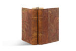tranches marbrées, gardes de papier marbré (reliure d'époque). Unique édition, ornée de 4 planches montrant différentes manières de découper les viandes et les poissons. RÉFÉRENCES : Vicaire, Bibliographie gastronomique, 143. (Dos manquant; rousseurs). - CARÊME Antonin (Marie-Antoine, dit), L'art de la cuisine française au dix-neuvième siècle. Traité élémentaire et pratique... Paris, chez l'auteur, 1833. 2 volumes in-8. Demi-basane fauve bigarrée, dos à nerfs titrés et tomé or, gardes de papier marbré orange, couvertures conservées (reliures postérieures). Ensemble de 2 volumes constituant la 1ère livraison de l'ouvrage majeur composé par le chef Antonin Carême. L'illustration varie selon les exemplaires, celui-ci renferme 9 planches et 1 portrait gravé représentant Carême. Bel exemplaire (légère mouillure sur plusieurs pages du 1er volume). RÉFÉRENCES : Vicaire, 147; Cagle 120 et 394. PROVENANCE : Bibliothèque Horace Finaly[GASTRONOMY] - CARDELLI M., Nouveau manuel complet des gourmands ou l'art de faire les honneurs de sa table, [...]. Paris, Roret, 1842. Large in-16, 280 pp. Half blond calf, boards with gilt fillets on the edges of the cardboard, smooth spine decorated, marbled edges, marbled paper endpapers (period binding). Unique edition, decorated with 4 plates showing different ways of cutting meat and fish. REFERENCES: Vicaire, Bibliographie gastronomique, 143. (Spine missing; brown spots). - CARÊME Antonin (Marie-Antoine, dit), L'art de la cuisine française au dix-neuvième siècle. An elementary and practical treatise... Paris, chez l'auteur, 1833. 2 volumes in-8. Half fawn coloured basane, spines titled and tomé or, orange marbled paper endpapers, covers preserved (later bindings). Set of 2 volumes constituting the 1st issue of the major work composed by the chef Antonin Carême. The illustration varies according to the copy, this one contains 9 plates and 1 engraved portrait representing Carême. A fine copy (slight spotting on several pages of the first volume). REFERENCES: Vicaire, 147; Cagle 120 and 394. PROVENANCE: Horace Finaly Library