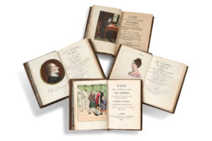 Paris, Saintin, 1815 ; - Le Lavater des dames ou l'art de connaitre les femmes sur leur physionomie. Paris, Saintin, 1815 ; - L'art de connaître les hommes sur leurs attitudes, leurs gestes et leurs démarches. Paris, Saintin, 1813 ; - L'art de juger du caractère des hommes sur leur écriture. Paris, Saintin, 1816. Complet de leurs planches. (Reliures frottées).Set of 4 works. In-16, contemporary basane, gilt roulette on the boards, titled and decorated smooth spines, roulettes on the edges. - Le Lavater portatif ou précis de l'art de connaitre les hommes par les traits du visage. Paris, Saintin, 1815; - Le Lavater des dames ou l'art de connaitre les femmes sur leur physionomie. Paris, Saintin, 1815; - L'art de connaître les hommes sur leurs attitudes, leurs gestes et leurs démarches. Paris, Saintin, 1813; - L'art de juger du caractère des hommes sur leur écriture. Paris, Saintin, 1816. Complete with their plates. (Bindings rubbed).