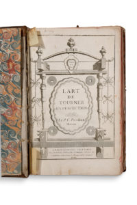PLUMIER Charles (1646-1704)L'art de tourner en perfection Paris, Charles Antoine Jombert, 1749. In-folio (410 x 270 mm), xxvii (dont titre-frontispice et titre)-privilège du roi-244 pp. (erreur de numérotation à partir de la p.156, en fait 242...