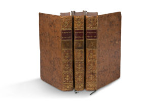 viii-322-334-422 pp. Plein veau moucheté d'époque, dos lisses ornés de caissons avec fers, pièces de titre de maroquin rouge, pièces de tomaison de maroquin blond, tranches rouges, signets conservés. (Pages brunies par endroits, quelques rousseurs, sinon bel exemplaire).[HISTORY] History of Scotland during the reigns of Queen Mary, and King James VI, until the accession of this Prince to the Throne of England [...] Paris, Pissot et Prault, 1785. 3 volumes in-12 (174 x 103 mm), viii-322-334-422 pp. Full contemporary speckled calf, smooth spines decorated with boxes with irons, red morocco title-pieces, blond morocco tomato-pieces, red edges, bookmarks preserved. (Pages browned in places, some foxing, otherwise a good copy).