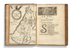 titre-frontispice-[11] ff.-255 pp. (erreur de numérotation, 245)-75 pp. Plein veau fauve, plats ornés d'un double-filet doré en encadrement, dos à nerfs orné d'un double-filet doré et motifs, pièce de titre doré en maroquin rouge, tranches jaspées (reliure début XVIIIe siècle). Vignettes gravées sur cuivre par N. Picart sur les feuillets des titres-frontispices. Bandeaux et culs-de-lampe gravés sur cuivre. PROVENANCE : Louis Boyat, pourvu de la charge de conseiller au parlement de Dombes en 1712 (Cf. Poidebard, Baudrier & Galle, Armorial des bibliophiles du Lyonnais, Forez, Beaujolais et de Dombes, p. 67)(vignette ex-libris gravée et armoriée « Ex biblioth. Lud. Boyat [...] » contrecollée sur contreplat supérieur). (Légères mouillures et quelques rousseurs n'affectant pas le texte ; coiffe supérieure accidentée, épidermures et taches sur plats, coins émoussés). L'on joint : [SAINT-RÉAL César de (1643-1692)], La Vie de Jésus-Christ Paris, René Guignard, 1678. In-4. Plein veau brun moucheté, plats ornés d'un double encadrement d'un triple filet doré avec fers en écoinçons, dos à nerfs titré et orné de fleurons dorés (reliure d'époque). Édition originale, ornée d'une carte de Palestine à pleine page, ainsi que d'un bandeau par Sébastien Le Clerc et d'un cul-de-lampe répétés. (Reliure accidentée (coiffes accidentées, fortes épidermures); quelques rousseurs). PROVENANCE : Abbé Reynold de Sérézin (vignette ex-libris gravée du XIXe siècle contrecollée sur le contreplat supérieur); famille Bernard de La Vernette-Saint-Maurice (vignette ex-libris gravée et armoriée du XVIIIe siècle.Les Oeuvres du Sieur de Saint-Amant. Première partie - Suitte de la première partie des Oeuvres du sieur de Saint-Amant Paris, chez Toussaint Quinet, 1642. Large in-8 (246 x 177 mm), title-frontispiece-[11] ff.-255 pp. (error in numbering, 245)-75 pp. full calf, boards decorated with a gilt double-filet, spine gilt with double-filet and designs, gilt title-piece in red morocco, spotted edges (early 18th century binding). Copper-engraved vignettes by N. Picart on the title-frontispices leaves. Copper-engraved headbands and footnotes. PROVENANCE: Louis Boyat, appointed councillor to the parliament of Dombes in 1712 (Cf. Poidebard, Baudrier & Galle, Armorial des bibliophiles du Lyonnais, Forez, Beaujolais et de Dombes, p. 67)(engraved and armorial ex-libris vignette "Ex biblioth. Lud. Boyat [...]" pasted on upper back cover). (Slight spotting and a few freckles not affecting the text; top cover damaged, spotting and spalling on boards, corners dull). Attached: [SAINT-RÉAL César de (1643-1692)], La Vie de Jésus-Christ Paris, René Guignard, 1678. In-4. Full brown speckled calf, boards decorated with a double framing of a triple gilt fillet with spandrels, spine titled and decorated with gilt fleurons (period binding). First edition, decorated with a full-page map of Palestine, as well as a repeated bandeau by Sébastien Le Clerc and a cul-de-lampe. (Binding damaged (headbands damaged, heavy spotting); some foxing). PROVENANCE: Abbé Reynold de Sérézin (19th century engraved bookplate on upper flyleaf); Bernard de La Vernette-Saint-Maurice family (18th century engraved and armorial bookplate.