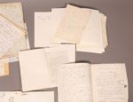 condoléances adressées au fils du doct. Chapelain (18 mars 1867). - Général HUSSON. 1 lettre autographe signé, 1866 + lettre autographe de J. De Sancy adressée à Lacroix au sujet de Chapelain : Les 2 en réponses à une demande de décoration. - Général de PREVAL. Invitation à une réunion pour le lendemain, autographe signée. - Invitation autographe manuscrite de la Comtesse de KIPELEFF. - 2 lettres autographes signées de Jules FAVRE (Avocat, député républicain de 1848 à 1851), 1837 et 1843. - Lettre autographe signée du Baron de REITZ, 1853, 3 pages in-8. - Une lettre autographe signée du Général de BISIGNY, 1853. - Une invitation imprimée et manuscrite des Princesse de BELGIOJOSA et Comtesse d'ARAGON, 1837. - Invitation de SOUVAROFF à la Comtesse de St.-Didier (marraine de Emile Chapelain), autographe signée. - Lettre autographe signée de la Comtesse de GAFFARELLI. - 2 invitations manuscrites Duc de HAMILTON. - Lettre du docteur Du BOURG autographe signée. - 2 lettres du Colonel COLNET, autographes, signées, 1845-46. - 1 lettre autographe signée + enveloppe du Maréchal MOLITOR, 1847. - Mme la Maréchale GERARD, 1 lettre autographe signée. - Général DERMONCOURT, 1 lettre autographe signée, 1834. - Paul de MUSSET (frère aîné d'Alfred de Musset), 3 lettres autographes signées, 1849. - Une lettre autographe signée de la Maréchale NEY, Princesse de la MOSKOWA au sujet du départ de son fils à l'armée et un billet autogr mss signé. - Lettre autographe signée de J. De NOIRVIEU à la Comtesse de St-Didier, 1838. - Lettre de Léon de MALEVILLE autographe signée, 1851.29 lettres. JOINT : une liste des « Autographes » manuscrite sur un feuillet imprimé promouvant les eaux de Luxeuil par le Dr. Chapelain ; Double liste dactylographiée de ces « autographes ». Listes d'une collection de 86 lettres autographes ayant appartenue au Chevalier de Coucy, puis au docteur Chapelain.