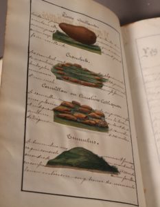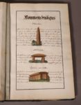 [Manuscrit et collages aquarellés]. « Archeologie » / « Jeanne ». Milieu du 19° siècle, in-folio (36 x 24 cm.), 53 ff. (ctd. 106 pp.) séparées par des serpentes. Texte d'une belle écriture dans un encadrement de filets, orné de très...