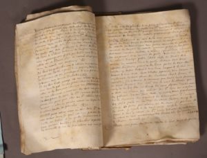 [Saint-Malo]. Partage des héritages de la succession deffunt Noble home (sic) Nicola Heurtault & Damoiselle Iosseline Guillaudeu, Sieur & Dame de Bricourt. 11 décembre 1663. Cahier in-folio de 21 ff.1/2 sur parchemin, titre calligraphié.Nicolas...