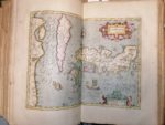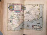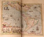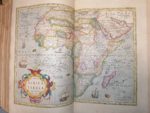 centrale sur les plats, dos orné de filets dorés et d'un fleuron doré entre-deux, tranches dorées.Exemplaire contenant 156 cartes à double page en coloris d'époque (hormis une simple) et 4 titres intermédiaires également coloriés à l'aquarelle : 7 cartes (planisphère, 2 Europe, Afrique, Asie, Ameriques, Pole. - 1 carte : Islande. - 17 cartes : Angleterre, Ecosse, Irlande. - 5 cartes : Norvège, Suède, Danemark. - 6 cartes : Prusse Livonie, Russie () et Chersonese. - 9 cartes : Espagne Portugal. - 37 cartes : France, Suisse, Belgique, Luxembourg (Les cartes indiquées XXXV et XXXVI à la table sont en une seule planche : Haynaut et Namur). - 29 cartes : Allemagne, Autriche, Pologne, Hongrie. - 18 cartes : Italie, Serbie, Bulgarie, Roumanie. - 4 cartes : Grèce. - 5 cartes : Afrique. - 12 cartes : Asie. - 6 cartes : Ameriques. Exemplaire incomplet des 4 premiers ff. dont le titre, la dédicace à Louix XIII et les 2 portraits, et, des 2 derniers feuillets d'index (Indice des Tables d'Italie et de Grece) : Pages (9) à 712 et 16 ff. d'index. Les planches de la planisphère, la Hollande, le Wurtemberg et la Basse-Alsace sont éffrangées. Déchirure sans manque aux cartes Europe (1) et Hongrie. Fente à la pliure centrale des cartes Ultonia, Aquitaine, Beauvaisis, Chine. Feuillets généralement brunis, petite mouillure marginale à plusieurs feuillets et nombreux feuillets plissés (particulièrement les premiers et derniers feuillets de texte très endommagés), exemplaire manié.Conforme à la description de Koeman I.114