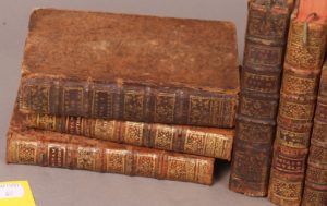 Paris, 1742. 3 volumes in-12 relié veau époque, dos à nerfs ornés. Gravures hors-texte. - TERENCE. Les Comédies. Amsterdam, 1747. 3 volumes in-12 reliés veau brun, dos à nerfs ornés. (coins et coiffes usés). HOMERE. Homeri Ilias, postrema editio. Cui originem & exitum belli Trojani addidimus, Coluthi Helenæ raptum: et Tryphiodori Ilij excidium. Latine omnia ad verbum exposita. 1580. In-16 relié demi-chagrin vert du XIX° siècle, dos à nerfs orné. - Cornelius NEPOS. Vitae excellentium imperatorum. Apud Westenios, Amsterdam 1711. In-16 relié veau brun (rel. fanée). - VALERE MAXIME. Valerii Maximi Dictorum factorum memorabilium lib. IX. Amsterdam, Jansson, 1647. In-16 relié veau brun, dos à nerfs orné. - LUCAIN. La Pharsale. Amsterdam, Elzeviers, 1662. In-16 relié plein veau brun du 19° siècle, dos à nerfs orné, double encadrement de filets dorés et de fleurons d'angles dorés sur les plats, dentelle dorée intérieure. - TACITE. C. Corn Tacitvs et in eum M.Z. Boxhornii observationes - Amstelodami. Ex officina Janssoniana, 1643. In-16 relié vélin époque à petits rabats.