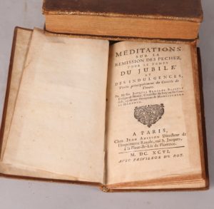 BOSSUET (Jacques-Bénigne). Meditations sur la remission des pechez, pour le temps du jubilé et des indulgences, tirées principalement du Concile de Trente. Paris, Jean Anisson, 1696. In-12, basane fauve, dos à nerfs orné, tranches mouchetées...